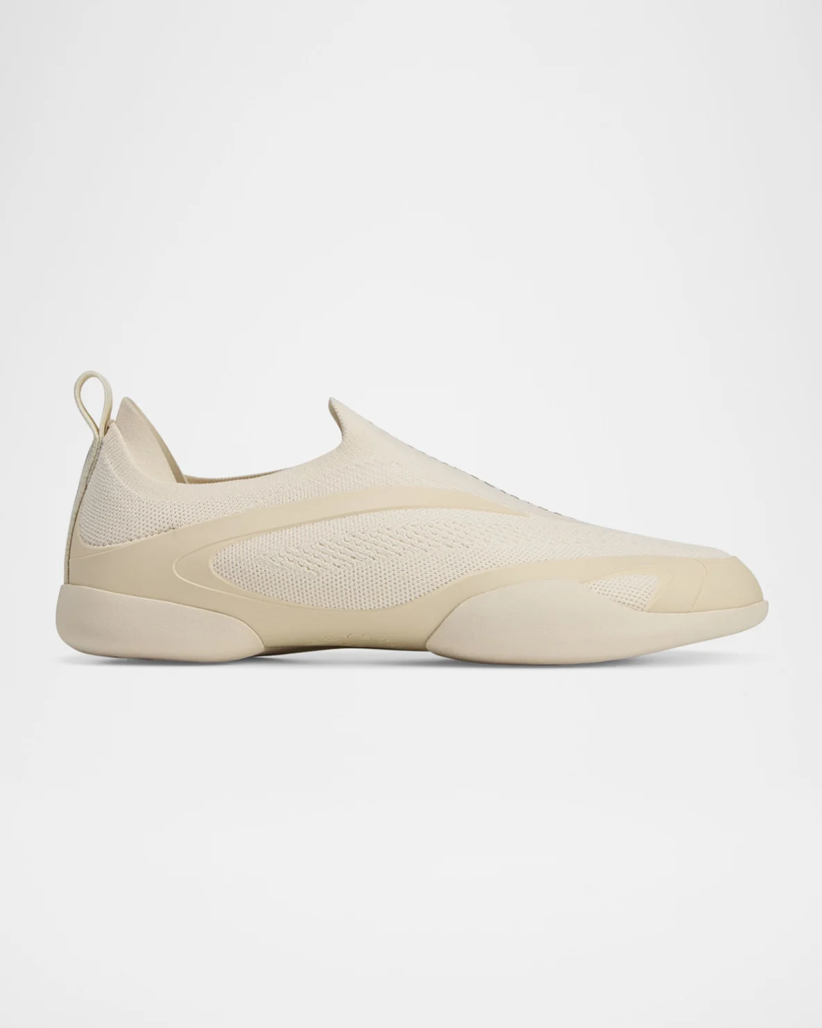 Nova silueta, iako inspirisana originalnim taekwondo modelima, nadilazi osnovne sportske okvire. Zadržan je niski profil i ravan đon, ali u profinjenijoj, gotovo skulpturalnoj formi. Kožne gornje površine, nekada simbol tradicije, sada su zamenjene elastičnim pletenim materijalom koji obavija stopalo poput druge kože – nežno, prilagodljivo, savremeno.