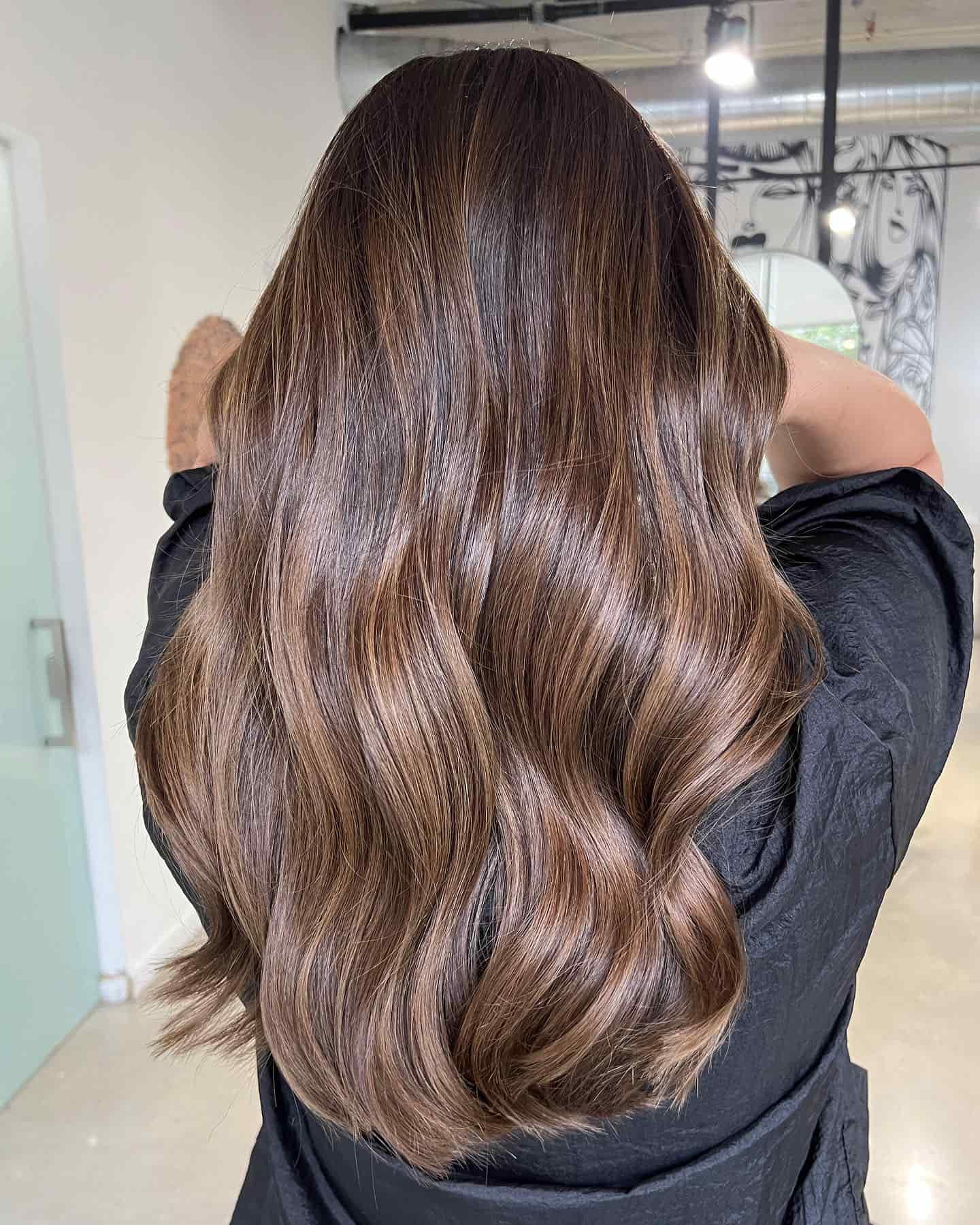 Bogati topli tonovi kestenjaste boje savršeno se uklapaju sa dugom kosom, stvarajući dubinu i punoću. Ovo je idealan izbor za one koji žele suptilnu, ali vidljivu promenu.
