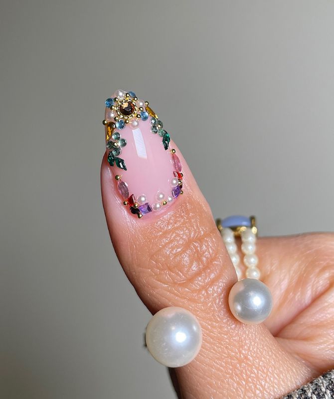 Ovo nije stil za one koji vole minimalizam. Barokni manikir karakterišu trodimenzionalni ukrasi, biseri i kristali raspoređeni tako da stvaraju dubinu i teksturu. Lepota ovog trenda leži i u njegovoj neponovljivosti – svaki dizajn noktiju je jedinstven. Možete izabrati dramatičnu verziju sa ukrasima duž celog nokta, ili se odlučiti za suptilniji izgled sa samo nekoliko pažljivo postavljenih detalja. Mogućnosti su beskrajne i uvek prilagodljive vašem ličnom stilu.