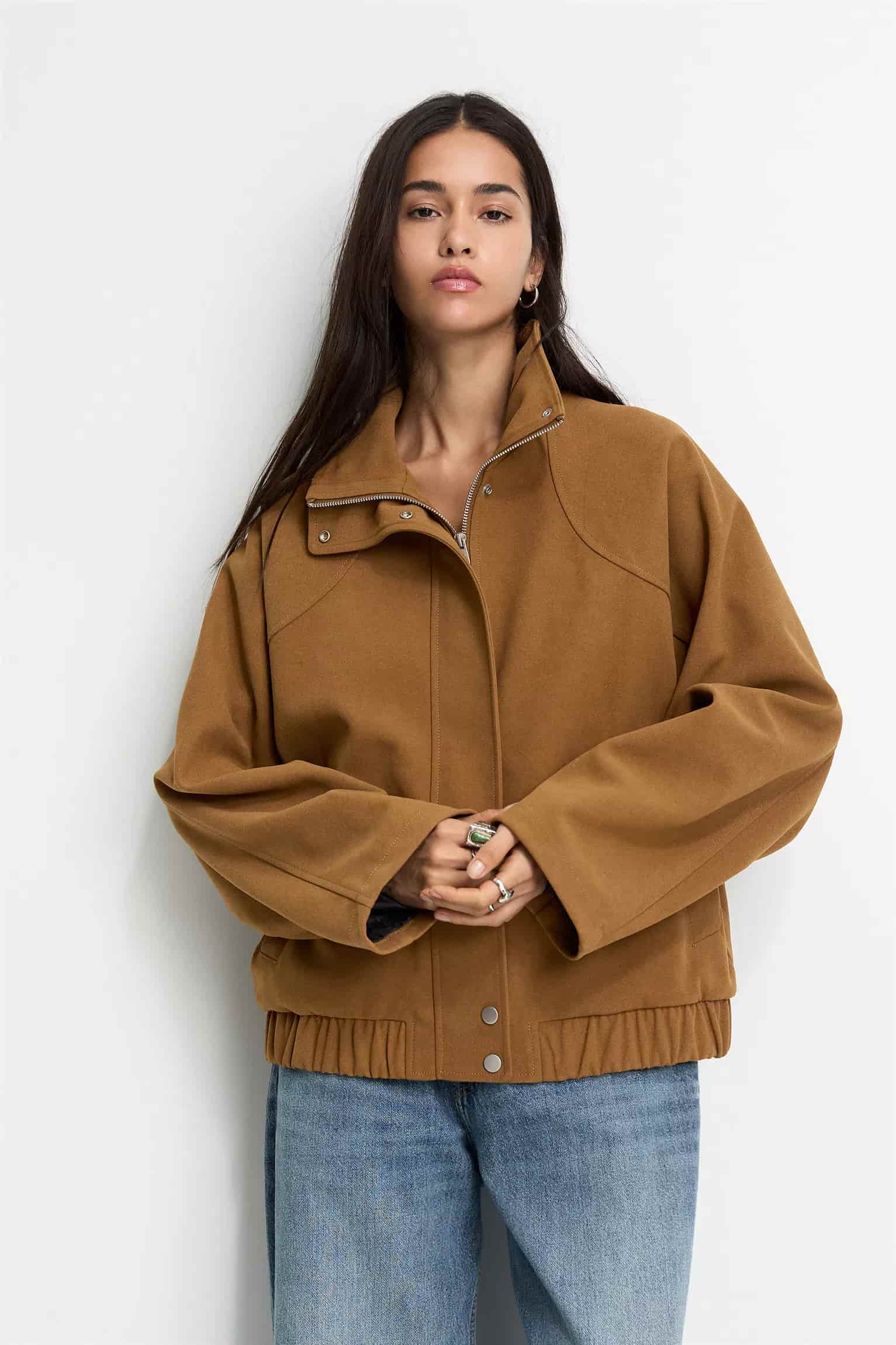BOMBER JAKNA OD 100% BRUŠENE KOŽE SA DŽEPOVIMA (ZARA)