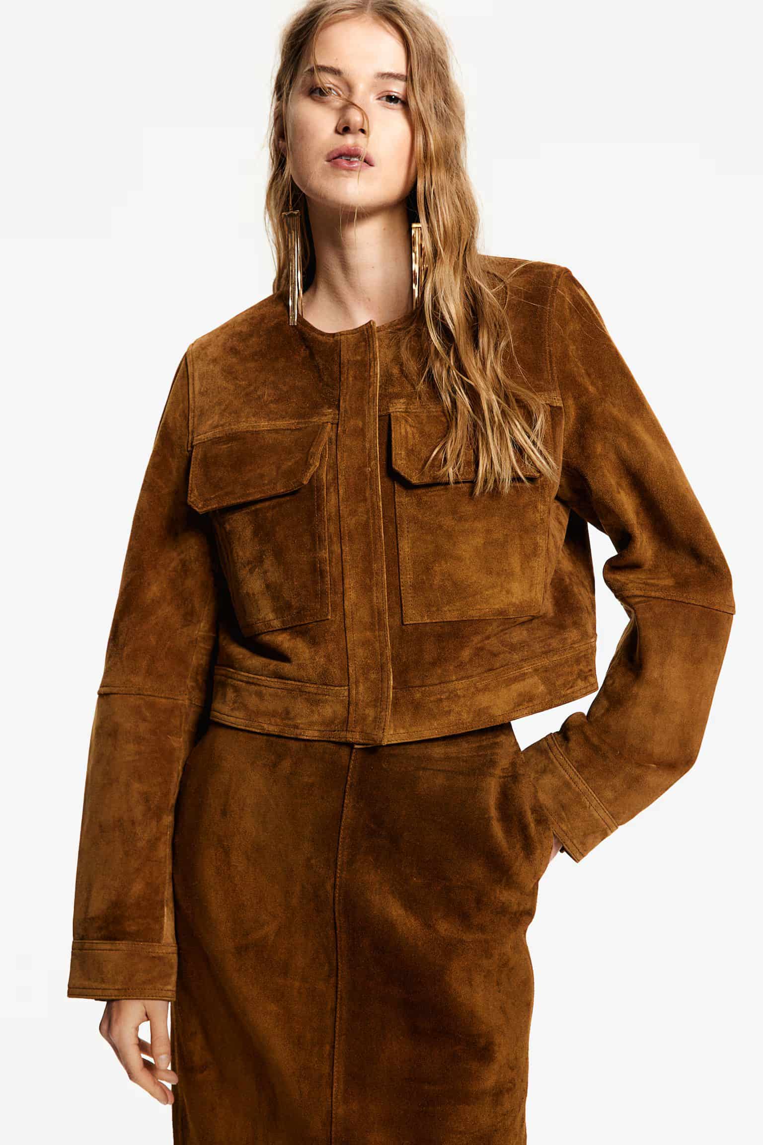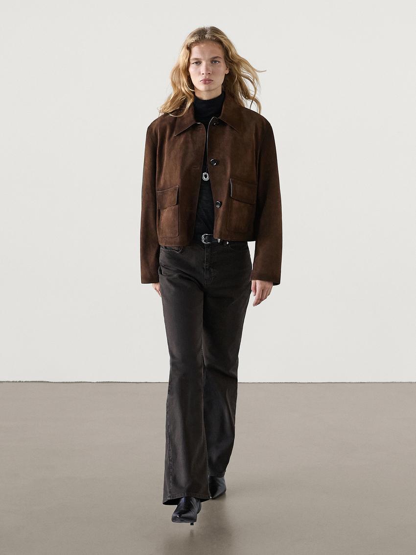 Jakna od brušene kože sa džepovima (Massimo Dutti)
