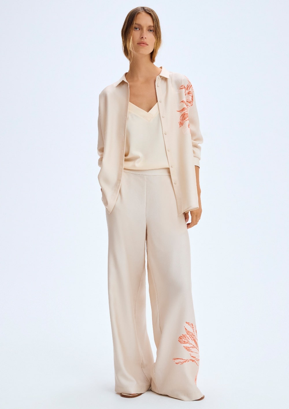 Pantalone satenskog izgleda sa cvetnim detaljima