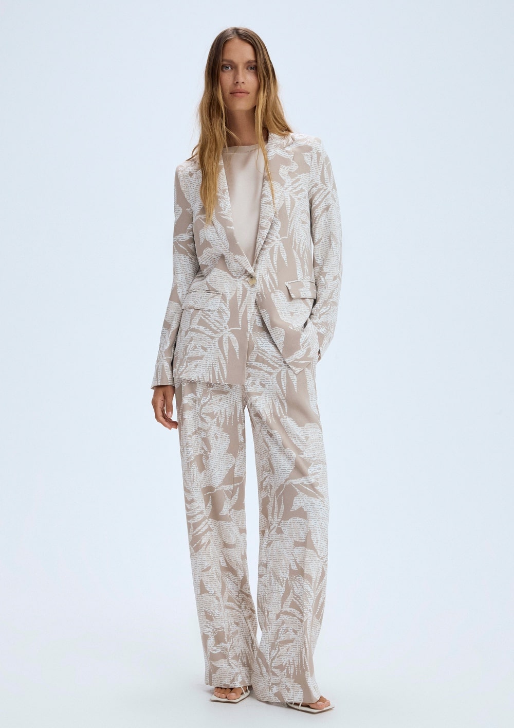 Minimalistički kroj jednostavnog bež odela je sinonim za bezvremensku elegantnu estetiku. Bež nijansa, koja se lako kombinuje sa različitim stilovima, donosi sofisticiranost bez suvišnih detalja. Kroj sakoa je ležeran, ravnog kroja, što savršeno pristaje pantalonama sa širim nogavicama. S druge strane, odelo sa detaljima unosi moderan šarm u klasičan dizajn. Ukoliko želite da se istaknete, ali na poseban način, ovakvo odelo sa suptilnim cvetnim printom je idealan izbor za vas. Sastoji se iz sakoa i pantalona.