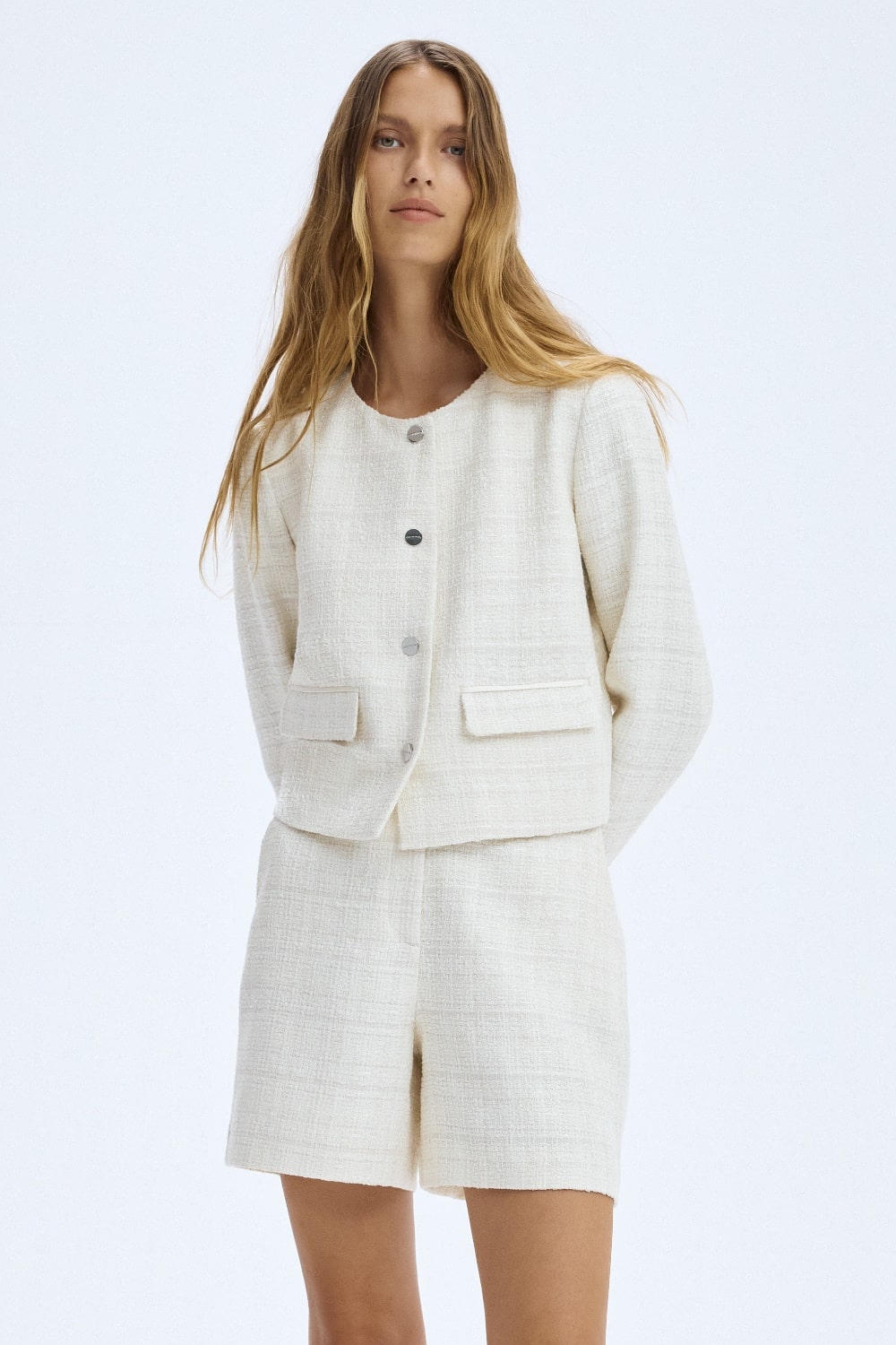 Sako i šorts u ovoj kolekciji donose savršen spoj udobnosti i sportske elegancije. Kroj je savremeno minimalistički, sa naglaskom na mekane linije koje stvaraju prefinjen izgled. Materijal u kombinaciji sa lanom je prijatan na koži, savršen za duge radne dane ili neformalne večere. Ovaj komplet je idealan za one koji žele da izgledaju profesionalno i chic, ali sa dozom opuštenosti. Sako ravnog i kraćeg kroja upotpunjuje jednostavnost šortsa, stvarajući savršen balans za svaki tip figure.