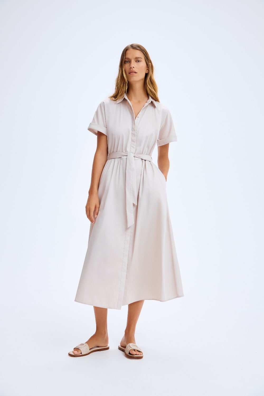 Haljine jednostavnog, ali ženstvenog kroja su više nego popularne. Koralna boja donosi živahnost, dok neutralna bež nijansa pruža lakoću u kombinovanju. Svaka haljina je dizajnirana da prati liniju tela ističući ženstvenu figuru, ali bez previše naglašava oblina. Savršen su izbor za poslovne događaje, večere ili posebne prilike.