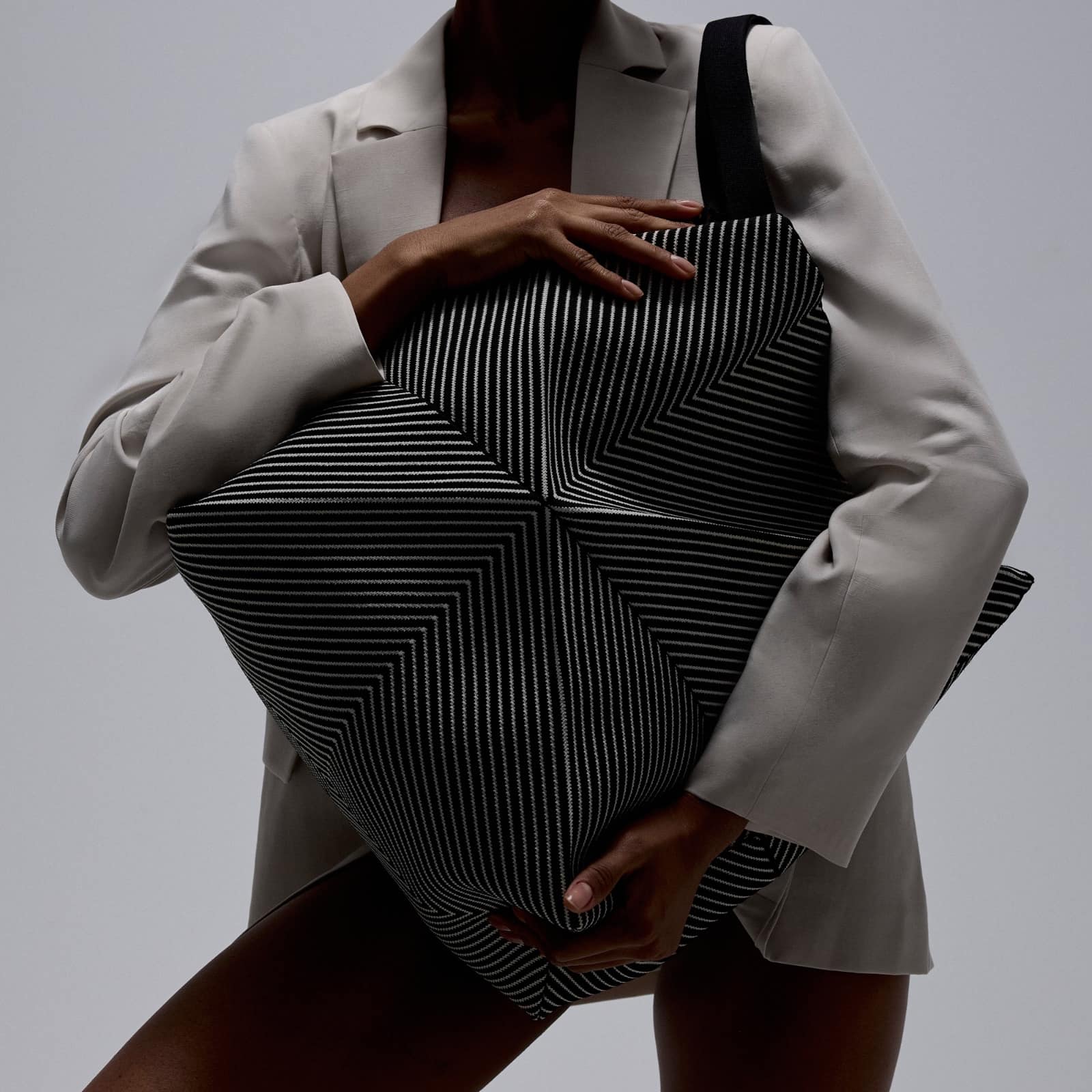 Naravno, ni jedna kolekcija ne može da prođe bez dobrog aksesoara, a u ovom slučaju je u pitanju jednostavna oversized torba kao nezaobilazan modni dodatak. Zahvaljujući minimalističkom dizajnu u crnoj boji sa belim prugama lako se kombinuje sa gotovo svakim autfitom. Dovoljno je prostrana da stane sve što vam je potrebno tokom dana, a bezvremenski dizajn čini je savršenim izborom za sve prilike. Zahvaljujući jednostavnim i dovoljno dugim ručkama, možete je nositi preko ramena, ali i u ruci.
