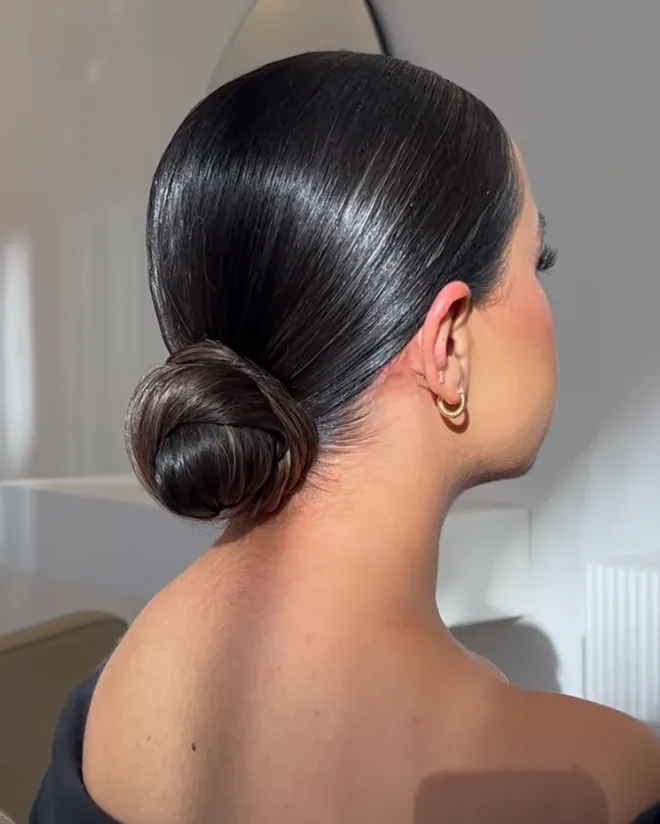Masna kosa nije prepreka za elegantnu zaglađenu nisku punđu – varijantu frizure za masnu kosu sa glatkom punđom na vrhu glave. Da biste dodali sjaj, koristite arganovo ulje. Ako želite mat izgled, koristite kremu za učvršćivanje i zaglađivanje.