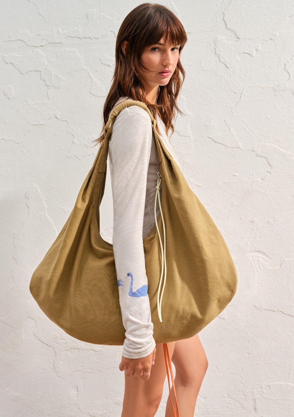 Kolekcija obuhvata razne slip haljine, pletene komplete, cargo pantalone, kapri modele, šortseve, suknje, kupaće kostime i topove, uz ležerne torbe i marame sa printom, u paleti boja koja uključuje sunčano žutu, zemljane tonove i srebrnu. Asimetrični krojevi i utilitarni detalji sa razigranim akcentima odražavaju Mijine omiljene komade garderobe koji su pažljivo osmišljeni. Ključni komadi uključuju žutu slip haljinu sa ukrštanjem na leđima, srebrni pleteni komplet sa topom i suknjom asimetričnih rubova na vezivanje, kapri pantalone sa asimetričnim cargo džepovima i utilitarnim detaljima, kao i maksi haljinu sa rukavima, bočnim vezivanjem i ilustracijom zvezde na prednjem delu.