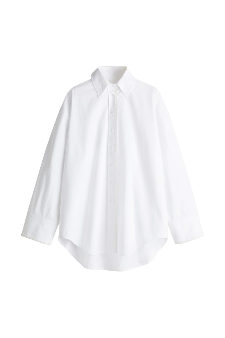 Crni krop prsluk ima kontrastne šavove, obložene dugmiće, perle na porubu, i male rese. Plava maksi haljina ima providne rukave, detalje sa nitnama, nabore i izrez na leđima. Bela košulja od teškog pamučnog poplina takođe ima izreze sa strane za oštriji izgled. Široke pantalone koje idu uz košulju imaju ležerniji izgled, sa pojasom na vezivanje i detaljima sa resama.