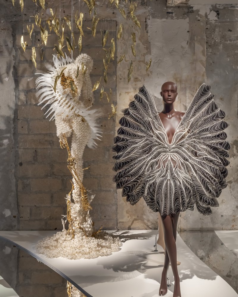Postavka obuhvata više od 100 njenih najpoznatijih kreacija iz kolekcija poput Crystallization i Sensory Seas, a pored odeće uključuje i savremenu umetnost, dizajn, kao i naučne predmete. Ovaj spoj različitih disciplina poziva posetioce da preispitaju granice između tela, odeće i okruženja.
