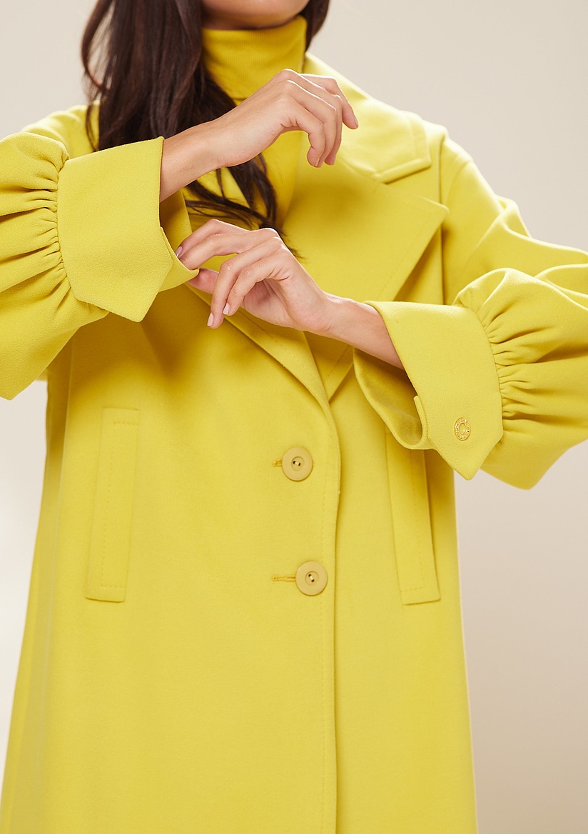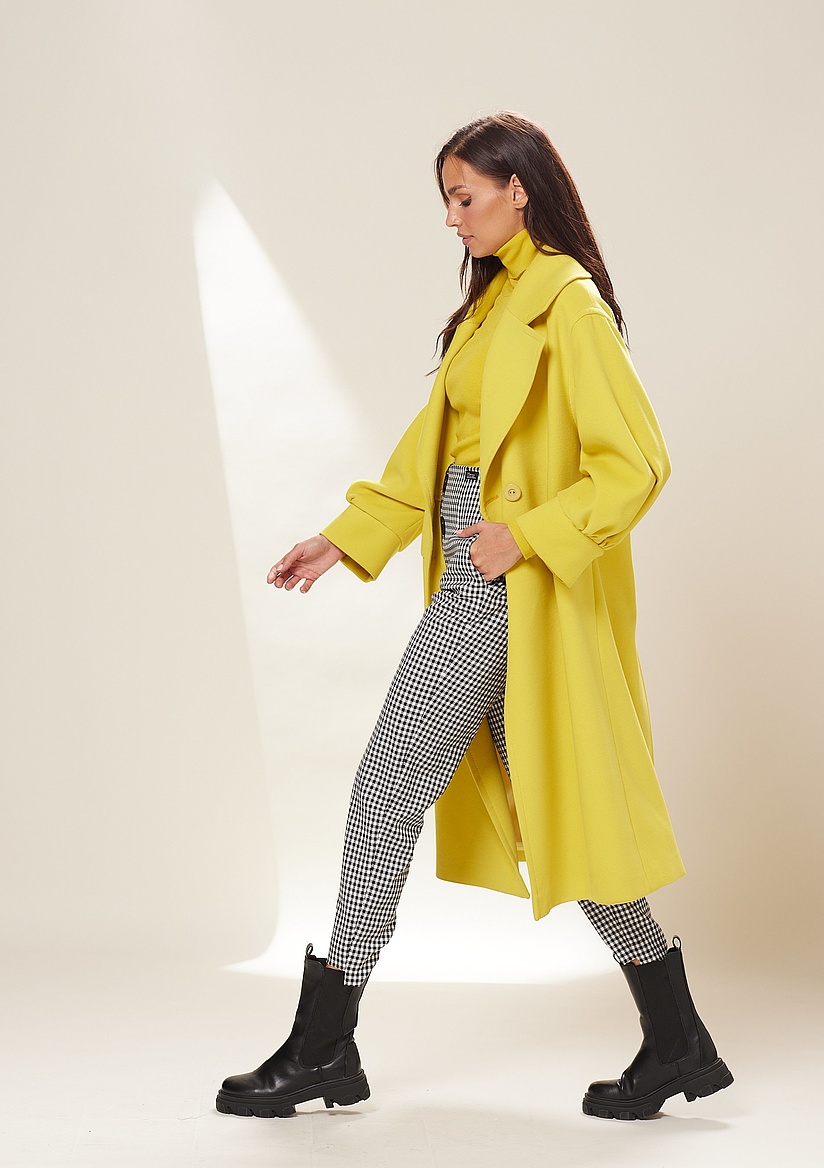 Efektna žuta boja razvedriće vaše autfite i doneće im potpuno novu dimenziju. Poželećete da nosite ovaj model u svim prilikama, a zbog njegove udobnosti svrstaćete ga u najdraži kaput. Ovaj model ima spuštena ramena i rukave koji se nabiraju iznad manžetni, pa tako možete da ga kombinujete uz svečane bluze i haljine.