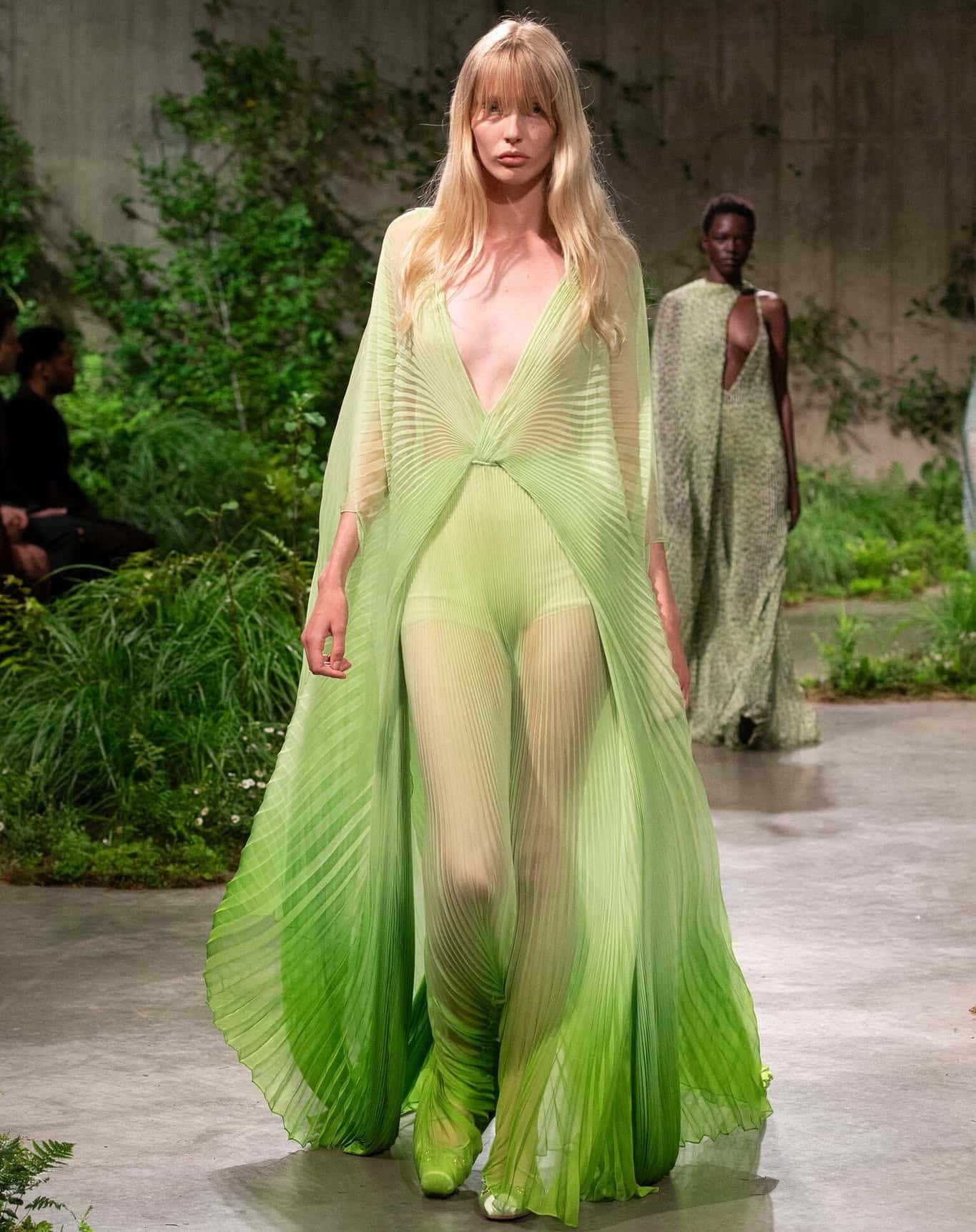 Zelena boja nastavlja da dominira i ove godine. Pored karakteristične jarke nijanse, prisutne su i tonovi smaragda, pistaća i masline. Modne kuće kao što su Victoria Beckham, Valentino i Gucci prikazale su zelene komade koji potvrđuju ovaj kolorit kao centralni trend sezone.