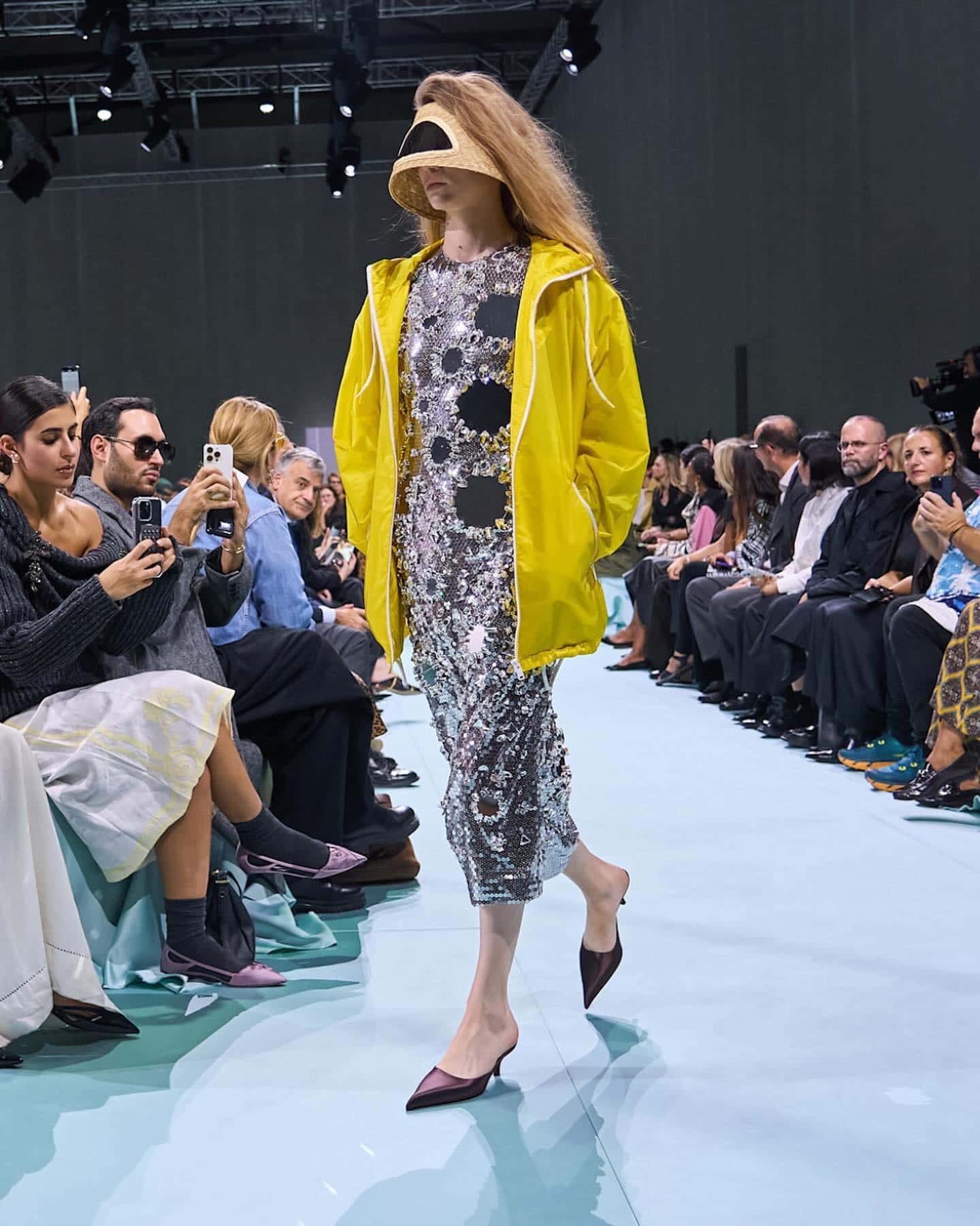 Šljokice izlaze iz sfere večernje mode i ulaze u svakodnevicu. Dizajneri podstiču kombinovanje sjajnih komada sa običnim garderoberom. Na primer, Prada je prikazala srebrnu haljinu ispod žutog mantila, dok je Sandy Liang ponudila mini haljinu sa gornjim delom od šljokica i čipkastim rukavima. Dnevni sjaj više nije tabu, već deo modernog izraza.