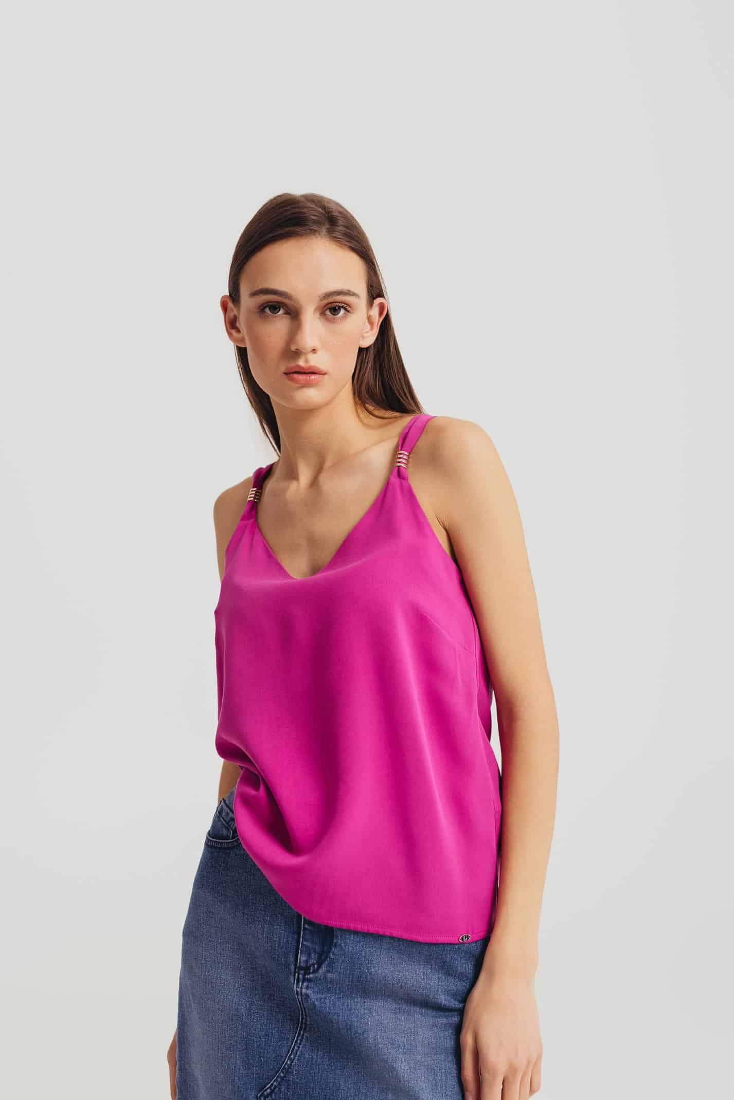 LEGEND Ženska viskozna bluza na bretele u ciklama boji