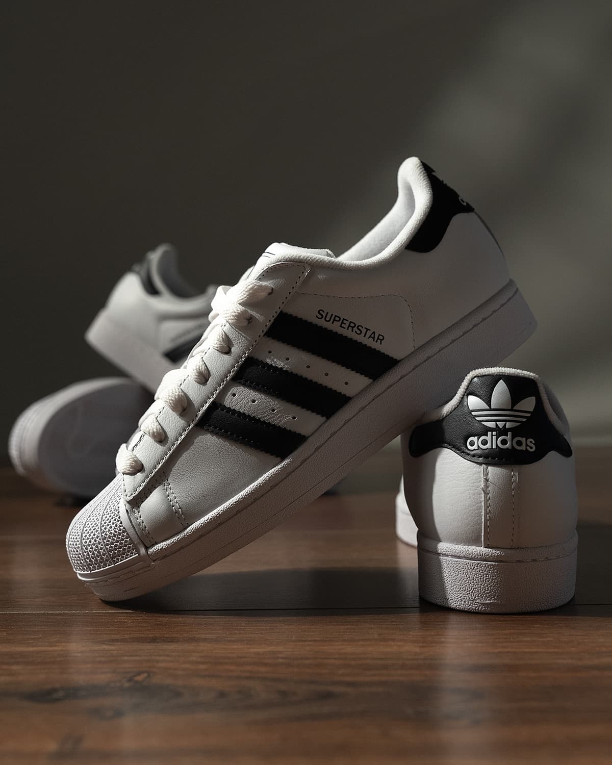 Još jedan model iz 1970-ih, Superstar je najpre bio košarkaška patika, ali je postao poznat zahvaljujući jedinstvenom dizajnu sa školjkastim vrhom. Poznate ličnosti kao što je Run-D.M.C. popularizovale su ovaj model krajem 1980-ih, čime je stekao status kulturnog fenomena. I danas je prisutan u klasičnim varijantama – beloj i crnoj – dok se sezonski pojavljuju i nove smelije boje. Mnogi poznati umetnici sarađivali su na posebnim izdanjima, uključujući Pharrell Williamsa i Wales Bonner.