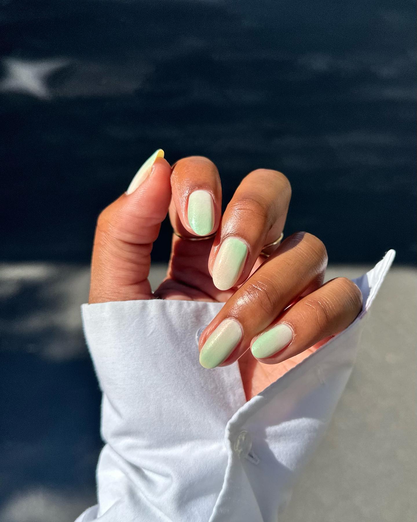 Spoj plave i zelene u ovoj osvežavajućoj nijansi čini mint jednom od najsvestranijih pastelnih boja. Za one koji ne žele da nokti budu potpuno mint, sjajan efekat se postiže kombinovanjem sa nude nijansama – za diskretan, a razigran rezultat.