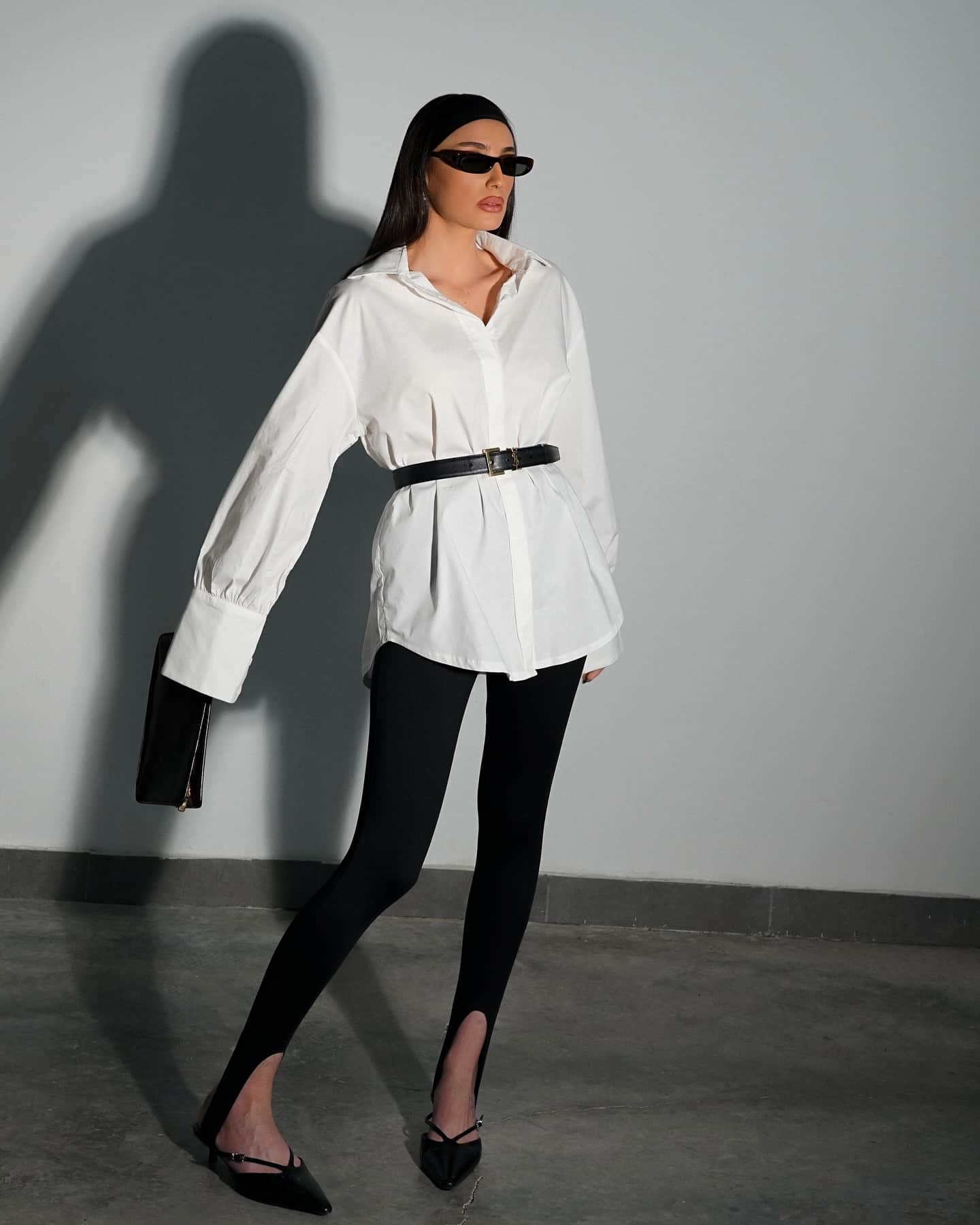 Ako vremenska prognoza ne zahteva blejzer, neka vam čista bela košulja bude glavni deo kombinacije. Za donji deo, razmislite o elegantnim helankama (čini se da je sportska elegancija sada prihvaćena u mnogim kancelarijama). Dodajte par čizama do kolena, štikle ili baletanke od kože kako biste uneli sofisticiranost u izgled.