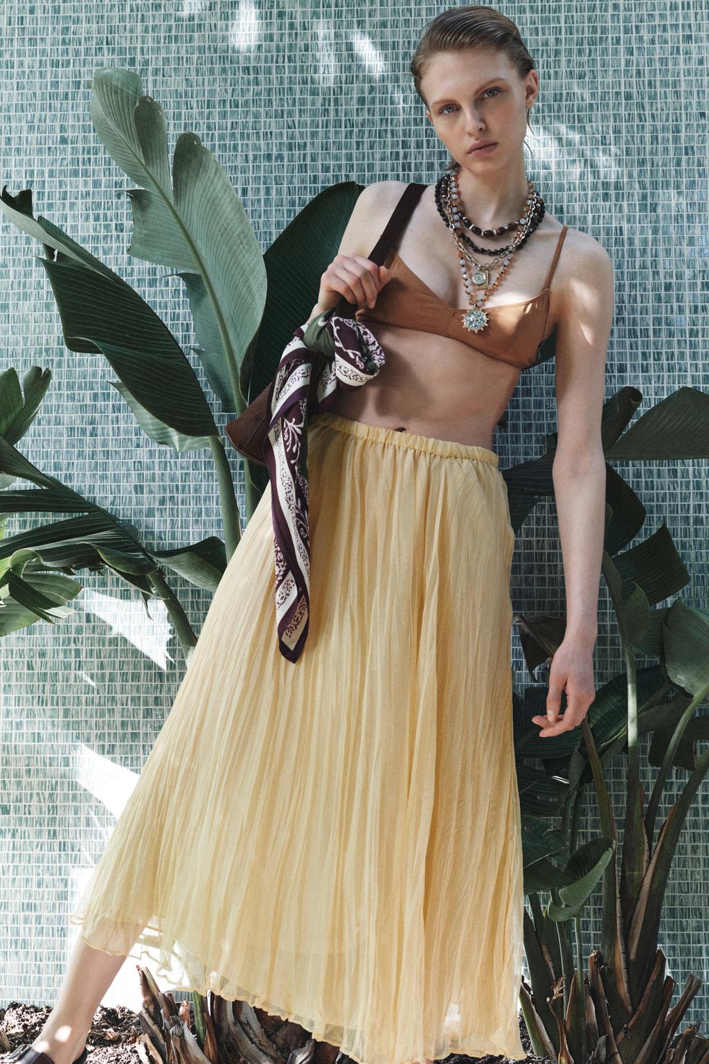 Puter žuta suknja je sinonim za lakoću. Midi suknje sa visokim strukom iz Zare izrađene od satena i laganih materijala savršeno prate pokrete tela i deluju kao da lepršaju u ritmu vetra. H&M nudi lagane pamučne suknje, idealne za svakodnevni izgled uz papuče i jednostavan top, ali mi ipak biramo elegantniji model od šifona koji nas je oduševio. Zavežite maramu oko glave i spremne ste za italijanski film.