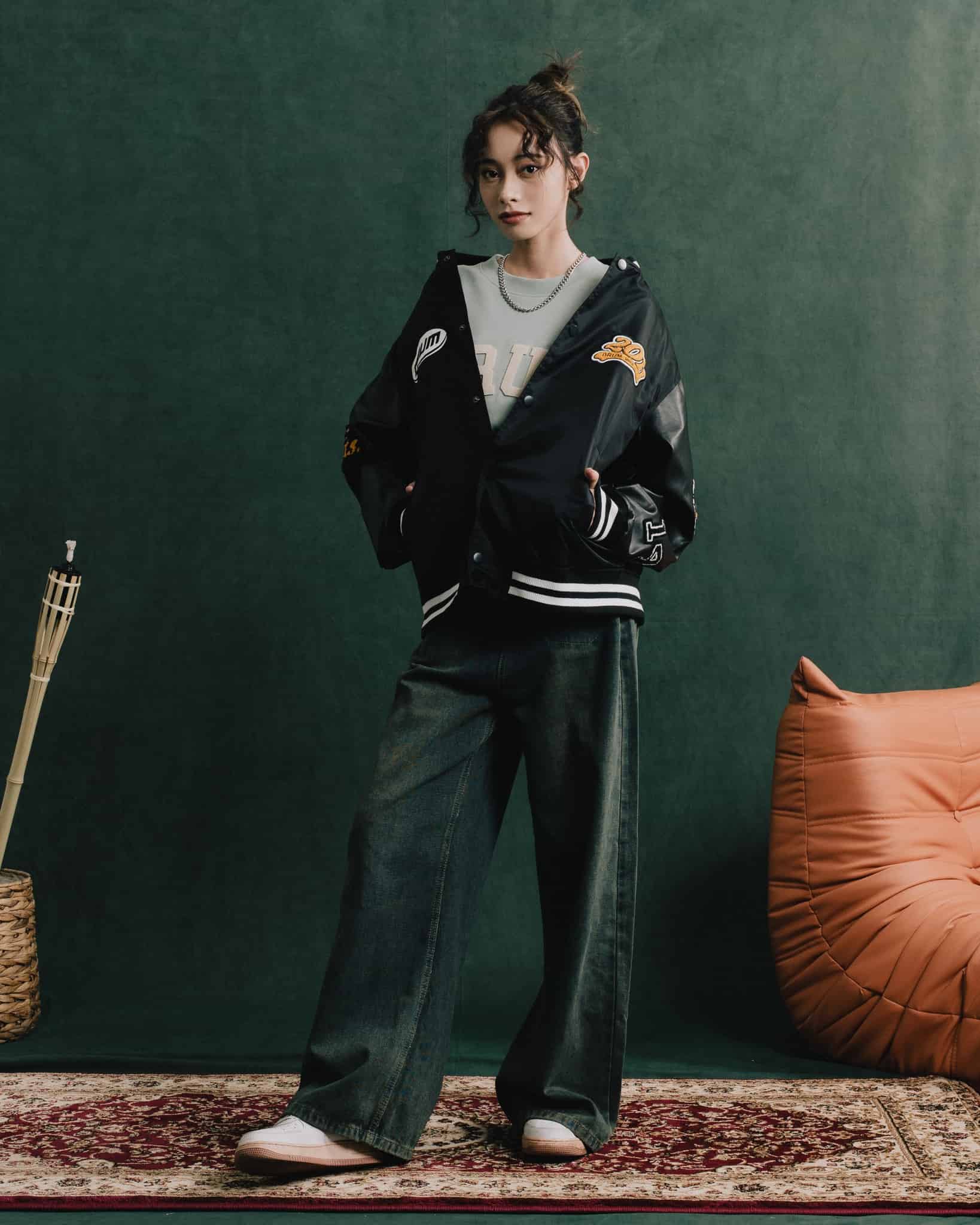 Za dane kada je potrebna udobnost, sportska jakna postaje najpametniji izbor. Kombinovana sa širokim farmerkama i kvalitetnim patikama od brušene kože, idealna je za šetnje po gradu ili brze susrete sa prijateljima. Velika torba od kože upotpunjuje praktični karakter ovog autfita.