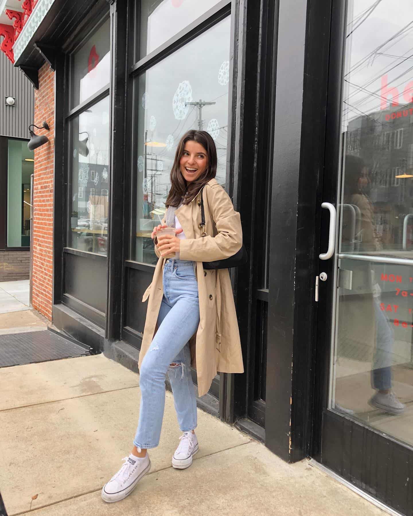 Uske farmerke se savršeno uklapaju u slojevite kombinacije sa proverenim klasicima – trench mantilom, pletenim džemperom i visokim kožnim čizmama. Ovakav izgled je idealan za prelazne periode, kada je neophodno kombinovati udobnost, funkcionalnost i stil. Kombinacija više slojeva ne samo da pruža toplotu, već daje mogućnost izražavanja kroz različite tkanine, dužine i oblike. Dodatna dinamika može se postići igrom boja. Neutralna osnova može biti osvežena detaljima u bordo, zelenoj ili braon nijansi. Klasični komadi u novim kombinacijama pokazuju kako uske farmerke mogu biti deo modernog ormara, čak i za one koji nisu skloni eksperimentisanju sa trendovima.