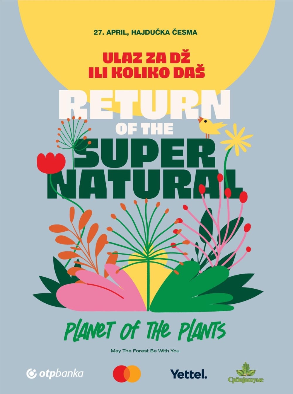 Nakon sedam godina pauze, legendarni Supernatural festival se vraća tamo gde je sve počelo, na Hajdučku česmu u srcu Košutnjaka. Ovogodišnje izdanje festivala nosi simboličan slogan “Return of Supernatural – Planet of the Plants”, i okuplja muzičare, ekološke aktiviste, naučnike, herbaliste i ljubitelje prirode kako bi zajedno proslavili Dan planete Zemlje na autentičan, edukativan i zabavan način.
