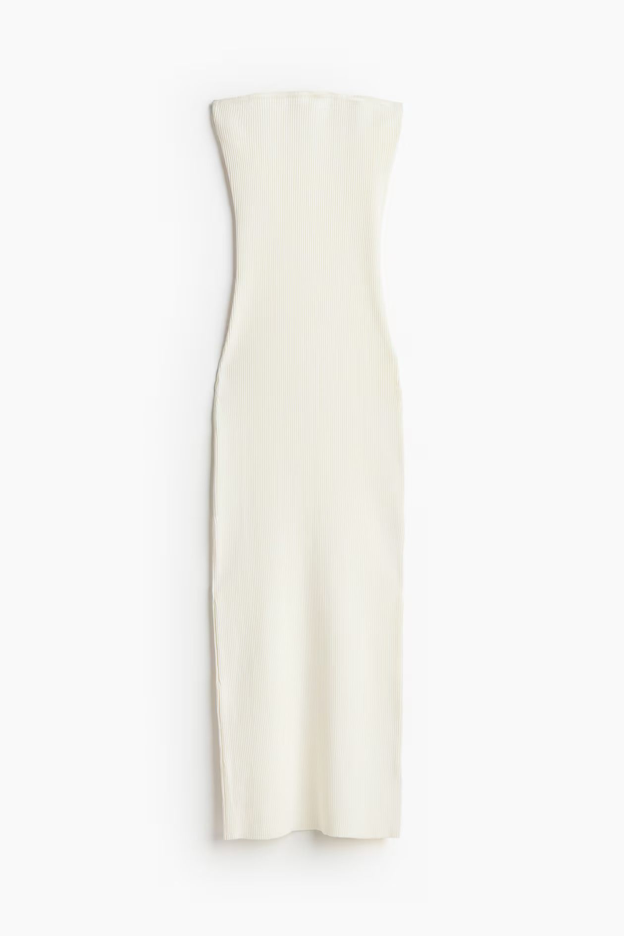 Bela teksturirana tube haljina bez bretela (BERSHKA)