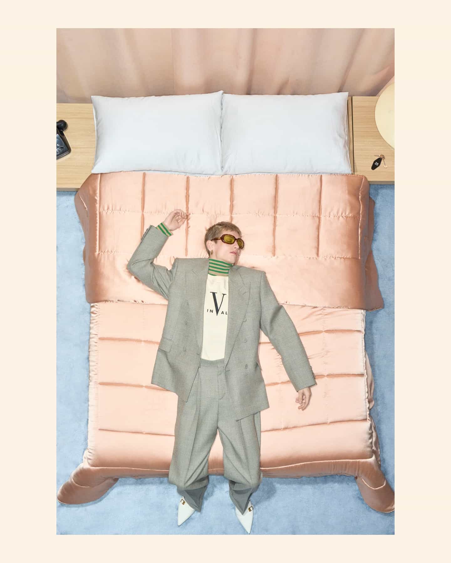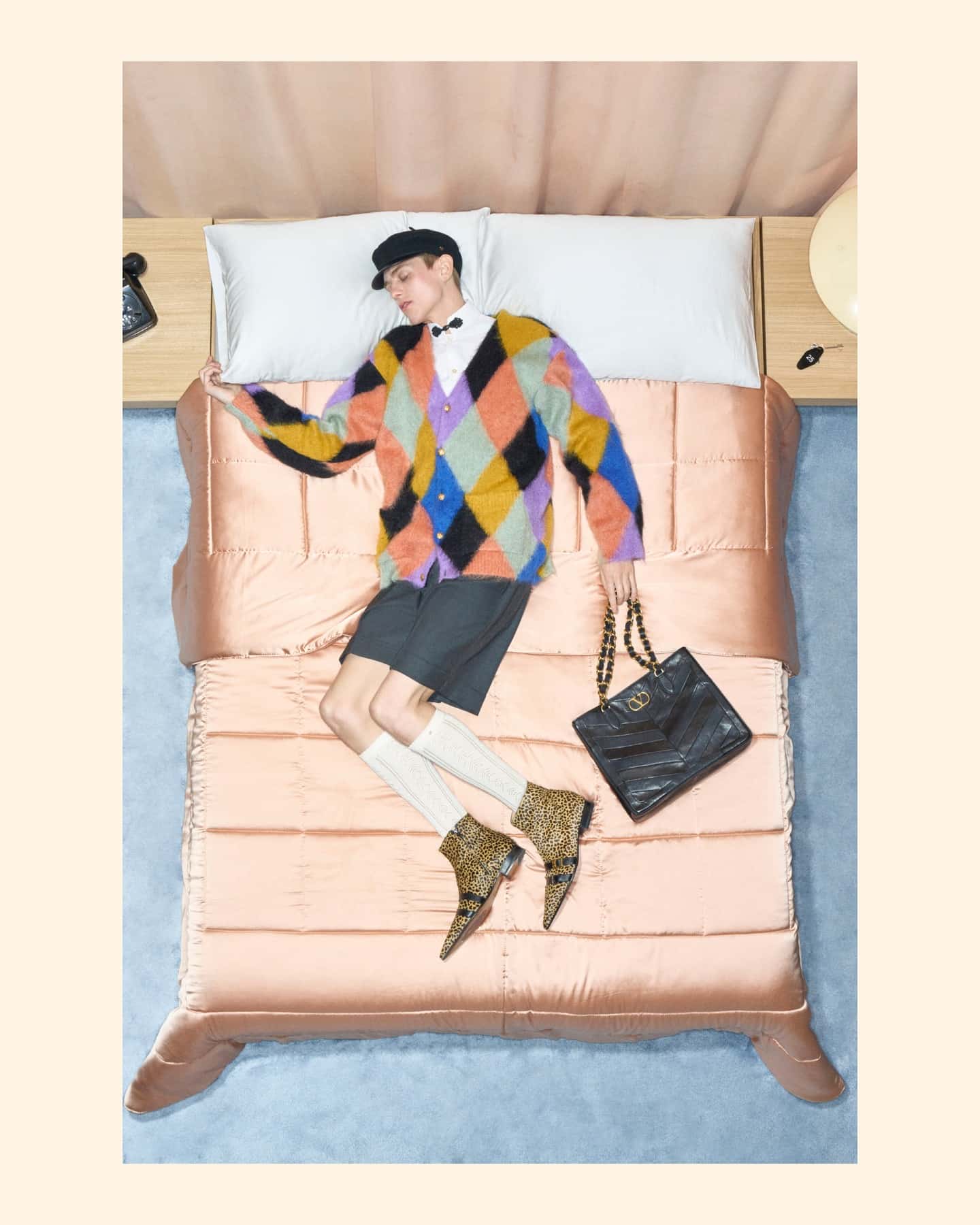 Fotografije iz kampanje snimljene su odozgo, dajući publici poziciju tihog posmatrača – kao da prisustvujemo nečijem intimnom susretu u koji možda ne bismo smeli da zavirimo. Ova vizuelna naracija savršeno odražava Michelea i njegovu fascinaciju dekadencijom, ekscentricnošću i estetskim haosom koji je uvek pomno osmišljen.