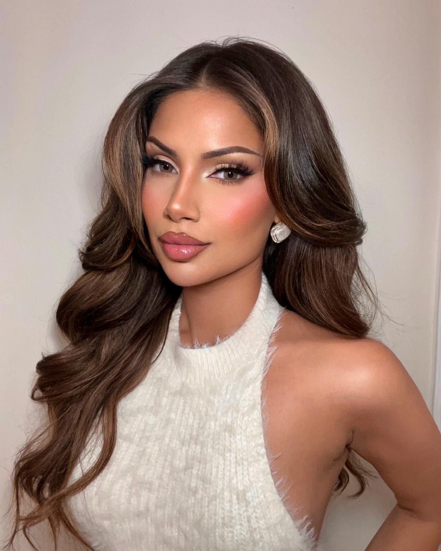 Neutralni tonovi u kombinaciji sa bronzanim akcentima – najviše na očima – daju licu prirodan i sofisticiran izgled. Mat rumenilo, u nekoj od zagasitih braon boja, savršeno se uklapa sa diskretnim mačkastim ajlajnerom i blagim sjajem na usnama. Ova kombinacija donosi toplinu i osvežava lice, što je idealno za zimu. Ukoliko želite da odete korak dalje odlučite se za obilniji sloj hajlajtera koji će vašem makeup looku dati poseban zdrav sjaj.